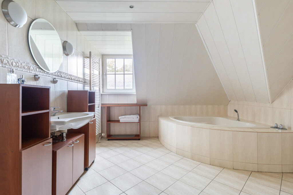 De overloop biedt toegang tot vier ruime slaapkamers, allen licht en functioneel ingedeeld. De moderne en royale badkamer is ingericht met ligbad, inloopdouche, wandcloset en eigentijdse wastafelmeubel.