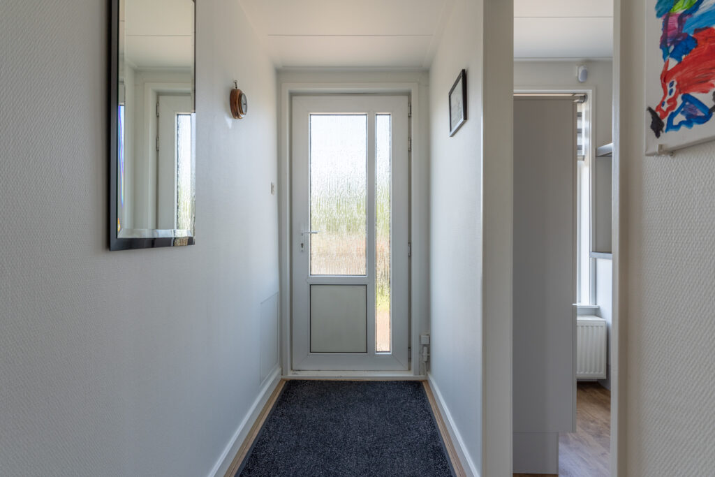 Begane grond: Via de zij-entree toegang tot de hal met het toilet. Aan de tuin- en waterzijde bevindt zich de lichte woonkamer (ca. 35 m²) met een fenomenaal uitzicht over het kanaal. Op de begane grond bevinden zich twee slaapkamers, ideaal voor gelijkvloers wonen of gebruik als werk-/logeerkamer. De nette keuken is voorzien van strakke kasten, werkruimte en de benodigde inbouwapparatuur. De badkamer is modern uitgevoerd en beschikt over een ruime inloopdouche, vloerverwarming, wastafelmeubel en aansluitend een functionele bijkeuken met ruimte voor wasmachine, droger en extra bergruimte. In het achtergedeelte bevindt zich de grote inpandige schuur/werkruimte met tal van mogelijkheden.