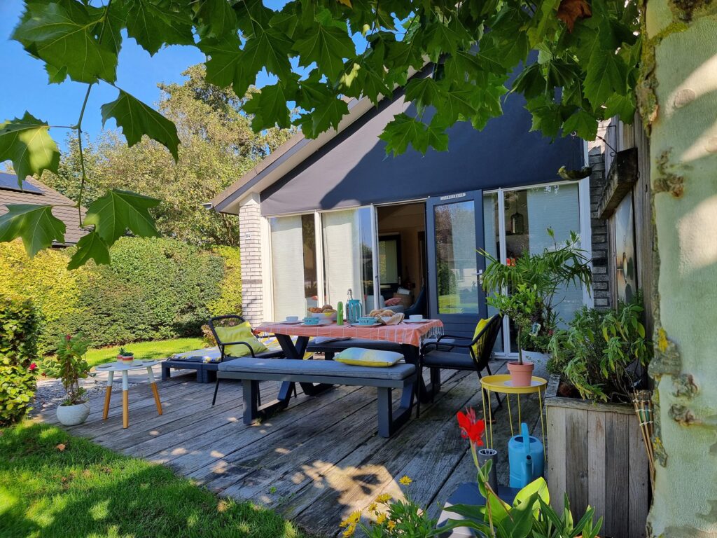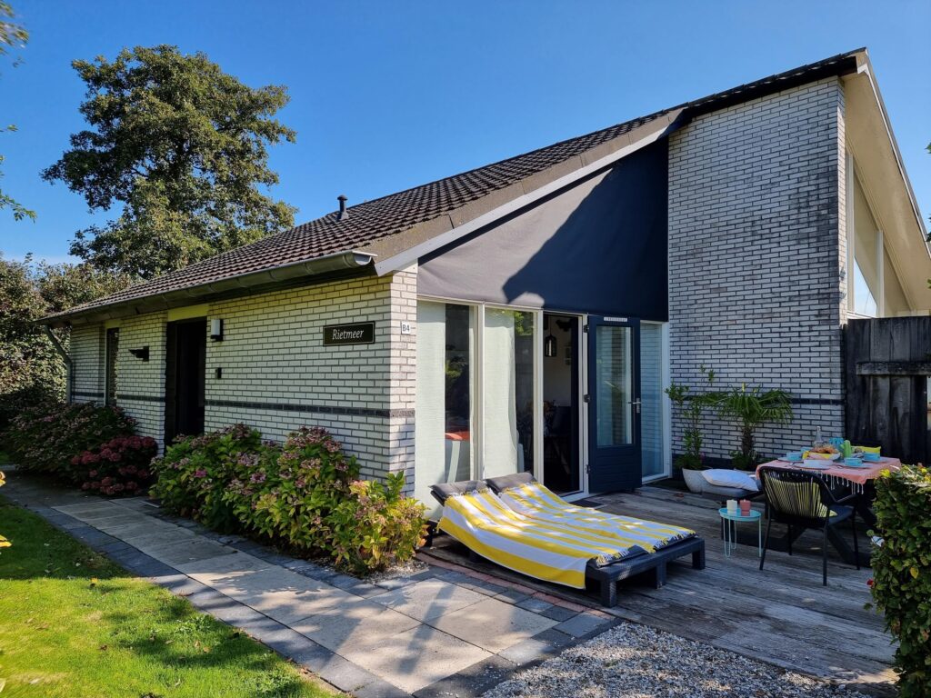 Direct nabij open vaarwater gelegen recreatiewoning "Rietmeer", met erg royale en zonnige tuin.