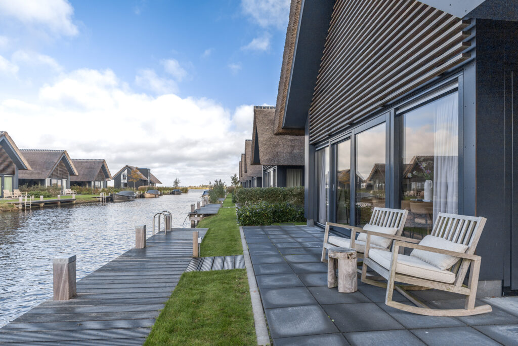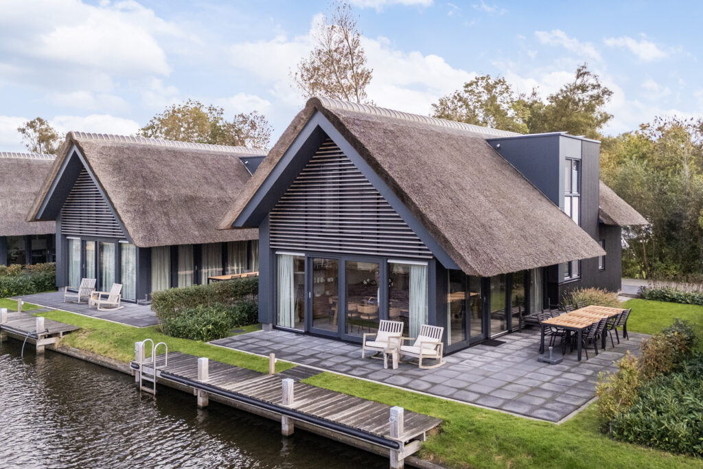Prachtige, riet gedekte recreatievilla, direct aan open vaarwater, midden in het Friese merengebied. Een heerlijk familiehuis!