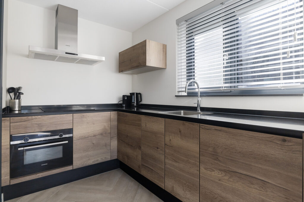 De woningen zijn gebouwd onder moderne architectuur, riet gedekt, v.v. forse raampartijen en aan de buitenzijde afgewerkt met zwart houten delen. Een zeer stijlvol en chique geheel, exclusief en zeer hoogwaardig afgewerkt. Gebouwd in 2023, dus hoogwaardig geïsoleerd en volledig gasloos. Er zijn 4 zonnepanelen aangebracht. Werkelijk in staat van nieuw en zo te betrekken!
