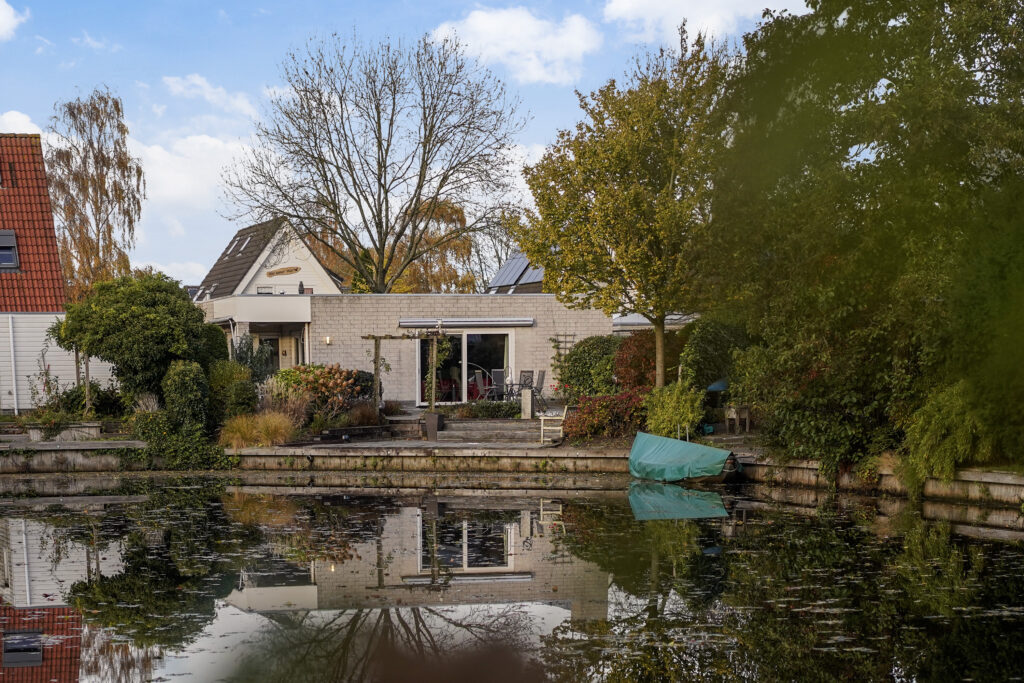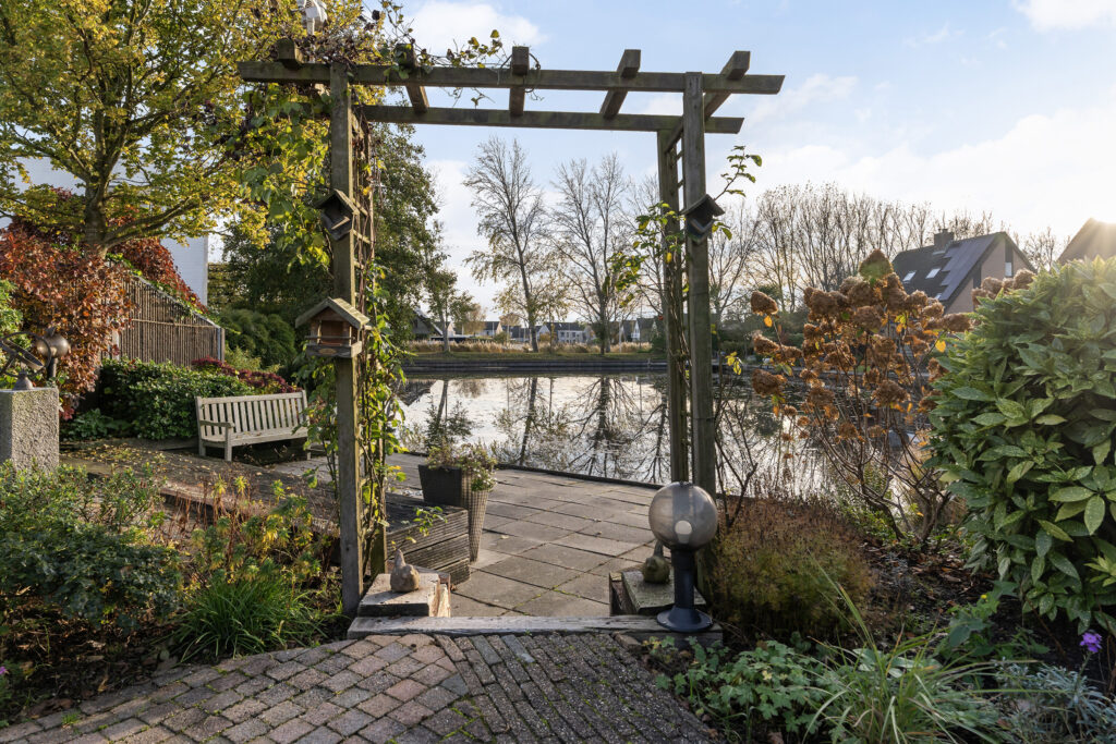 De tuin ligt rondom de woning, is onder architectuur aangelegd en zeer verzorgd. De achtertuin op het zuiden biedt volop zon, privacy en verschillende terrassen waar je heerlijk kunt ontspannen. Via de tuin heb je direct toegang tot het open vaarwater, ideaal voor waterliefhebbers die graag een bootje aanleggen of simpelweg willen genieten van het uitzicht over het kalme water en het groen.