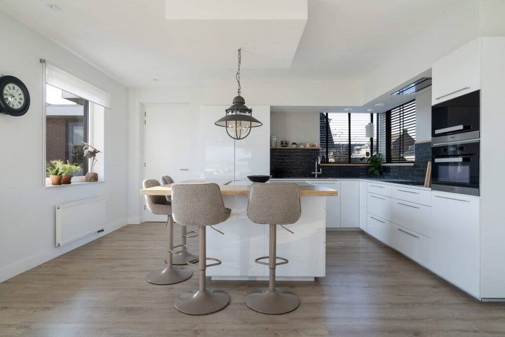 Een solide en ambachtelijk gebouwde woning, met een hoogwaardig afwerkingsniveau. Alle kozijnen zijn uitgevoerd in onderhoudsarm aluminium, er zijn keramische vlakke dakpannen geplaatst, de brede dak overstekken en boeidelen zijn uitgevoerd in onderhoudsarm Rockpanel, er zijn zinken hemelwaterafvoeren geplaatst en er zijn verholen (RVS) goten gerealiseerd. De woning beschikt over een centraal stofzuigersysteem, stompe deuren, een waterontharder, hardstenen dorpels en vensterbanken en vloerverwarming in bijkeuken, toilet begane grond, badkamer 1e verdieping en toilet 1e verdieping. En een leuke bijkomstigheid, de badkamer op de 1e verdieping is uitgevoerd met een was stortkoker, die uitkomt in de waskamer in de kelder. Wat een gemak is dat! Tot slot is de woning altijd uiterst zorgvuldig onderhouden, zoals blijkt uit het o.a. ook alweer vernieuwen van de keukenopstelling in 2015.