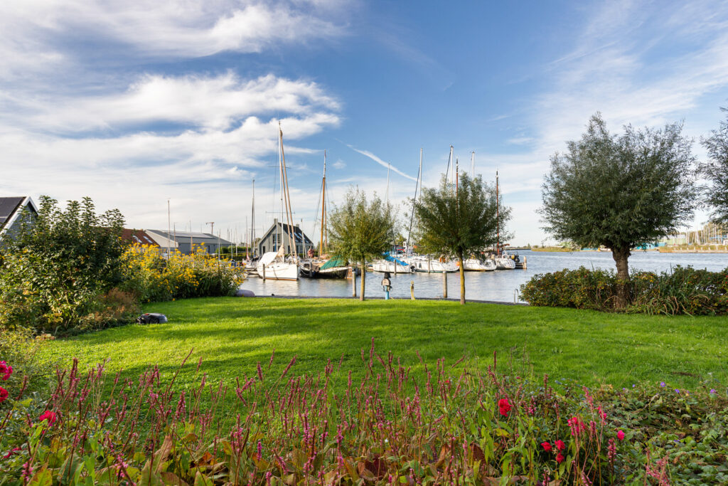 De fraai aangelegde tuin met diverse terrassen biedt volop ruimte om te ontspannen, te tuinieren of gewoon te genieten van het schitterende uitzicht over het water en de haven. Met een eigen (aanleg) oever van ca 38 meter (en trailer/boothelling) stap je zo met de boot het water op.