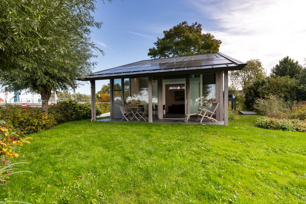 Op het royale perceel staat een modern vormgegeven bijgebouw dat op alle fronten verrast. Grote glazen puien bieden een panoramisch uitzicht over het water, waardoor binnen en buiten naadloos in elkaar overlopen. Hier ervaar je het ultieme buitenleven met alle comfort van nu.