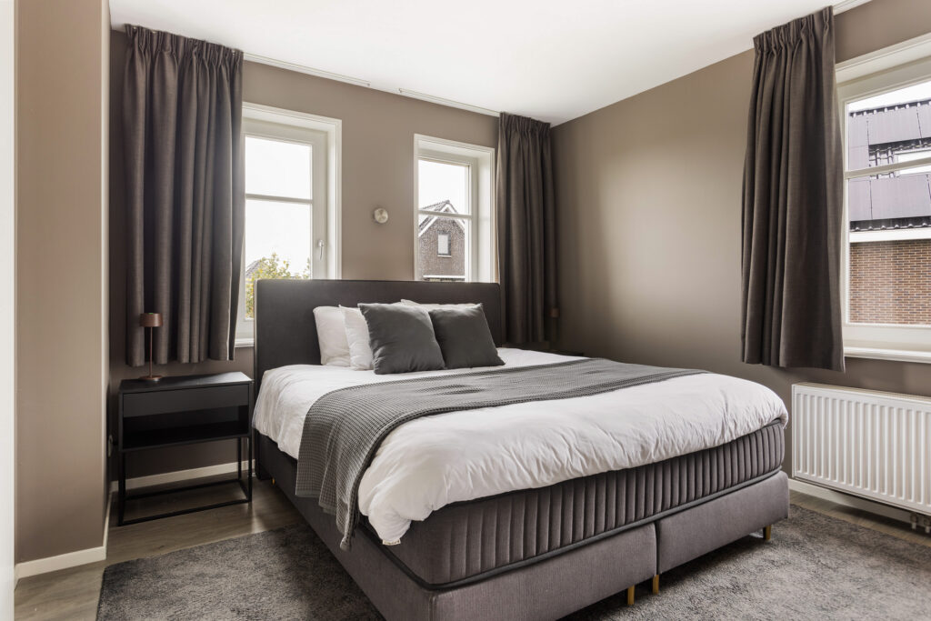 De slaapkamer aan de voorzijde is een ware eyecatcher: voorzien van een ruime walk-in closet én een eigen luxe en-suite badkamer met inloopdouche, designradiator, ligbad en wastafelmeubel.