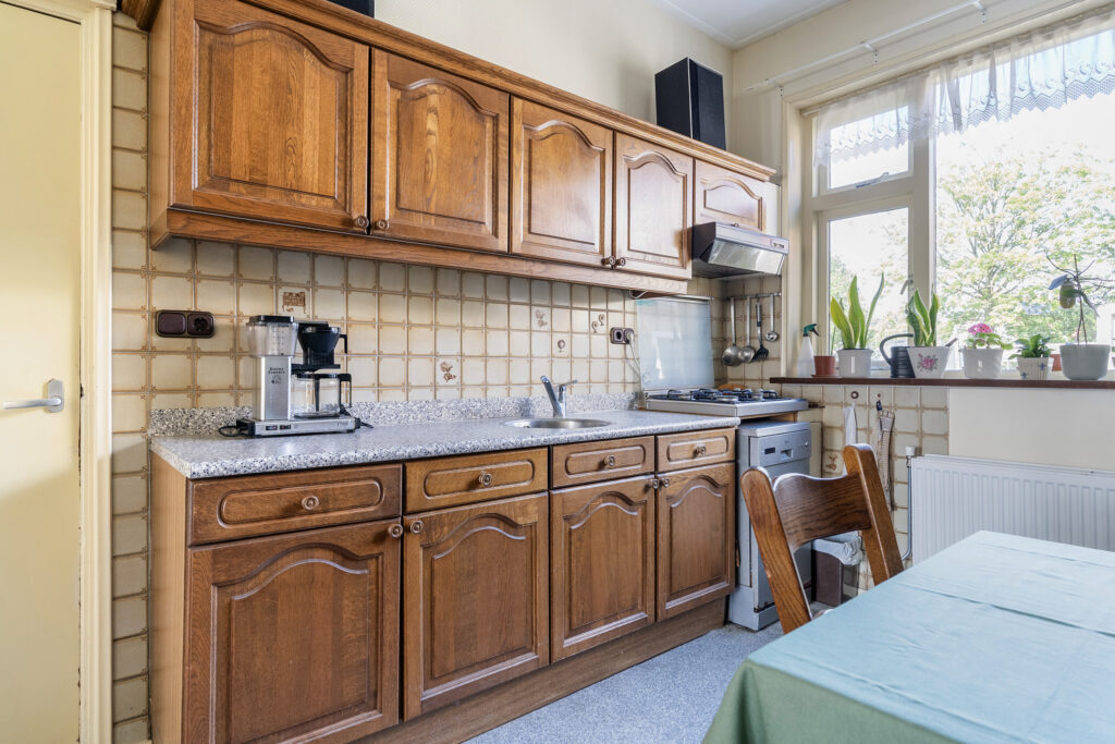 Via de entree kom je binnen in de hal, die toegang geeft tot zowel de woonkamer als de trapopgang. De woonkamer en eetkamer vormen samen een lichte, sfeervolle leefruimte met uitzicht op de riante tuin. De keuken is functioneel ingericht. Aangrenzend bevindt zich een bijkeuken met extra bergruimte, witgoedaansluiting en de CV-ketel. Vanuit de bijkeuken is tevens de badkamer bereikbaar, voorzien van toilet en douche.