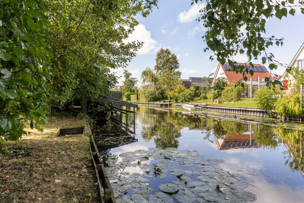 De woning heeft een 33 meter diepe achtertuin welke nog afgeschermd dient te worden met de buren. Aan de achterzijde van de woning bevindt zich prachtig open vaarwater, direct verbonden met de Friese wateren. Ideaal voor liefhebbers van varen, suppen of vissen, met een heerlijk vrij uitzicht over het water en het landschap.